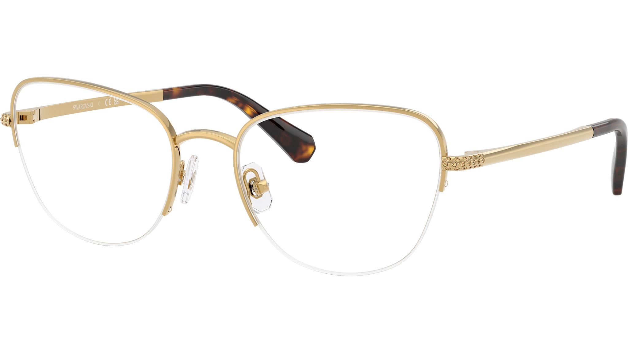 Occhiali da vista Swarovski SK1023 4004 donna, con montatura cat eye in metallo color oro e lenti demo. Naselli regolabili. Linea: Science of Facets. Codice modello: SK1023. Codice colore: 4004. Rivenditore autorizzato Swarovski Eyewear online. Ogni prodotto Swarovski viene consegnato con astuccio originale e accessori ed è coperto da garanzia del produttore di 12 mesi.