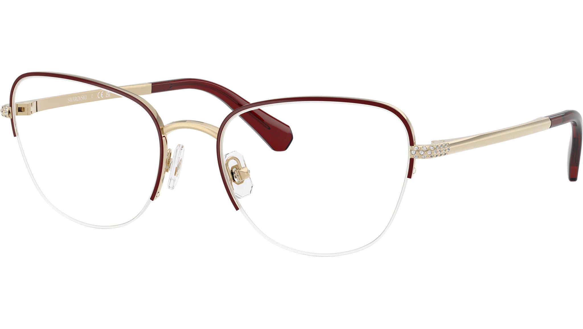 Occhiali da vista Swarovski SK1023 4038 donna, con montatura cat eye in metallo color oro chiaro / canna di fucile bordeaux e lenti demo. Naselli regolabili. Linea: Science of Facets. Codice modello: SK1023. Codice colore: 4038. Rivenditore autorizzato Swarovski Eyewear online. Ogni prodotto Swarovski viene consegnato con astuccio originale e accessori ed è coperto da garanzia del produttore di 12 mesi.