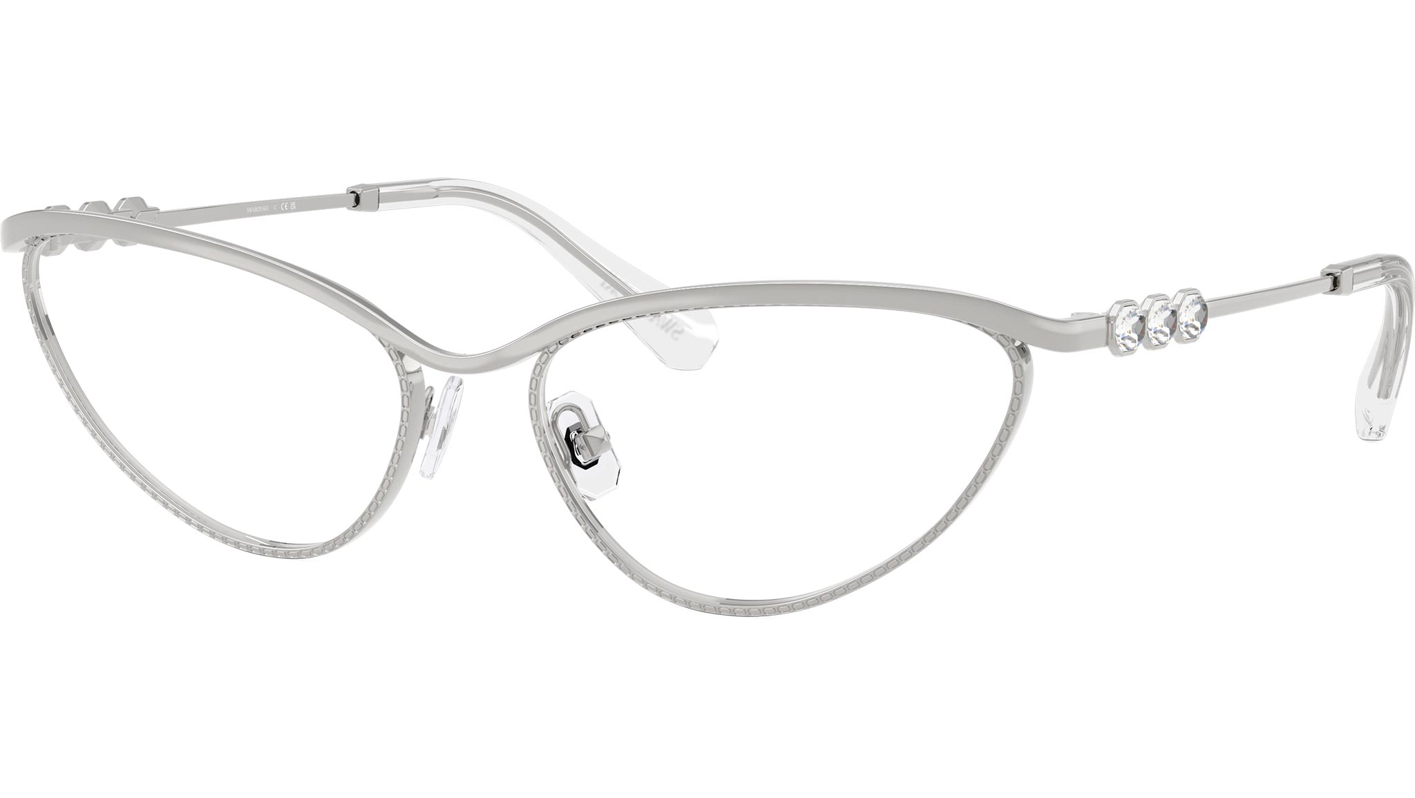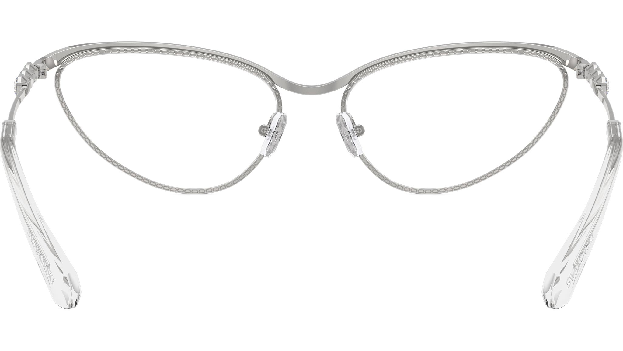 Occhiali da vista Swarovski SK1027 4001 donna, con montatura cat eye in metallo color argento e lenti demo. Naselli regolabili. Linea: Science of Facets. Codice modello: SK1027. Codice colore: 4001. Rivenditore autorizzato Swarovski Eyewear online. Ogni prodotto Swarovski viene consegnato con astuccio originale e accessori ed è coperto da garanzia del produttore di 12 mesi.