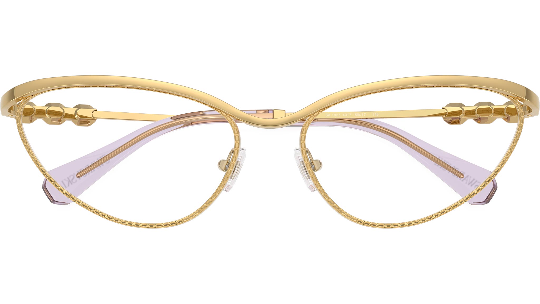 Occhiali da vista Swarovski SK1027 4017 donna, con montatura cat eye in metallo color oro e lenti demo. Naselli regolabili. Linea: Science of Facets. Codice modello: SK1027. Codice colore: 4017. Rivenditore autorizzato Swarovski Eyewear online. Ogni prodotto Swarovski viene consegnato con astuccio originale e accessori ed è coperto da garanzia del produttore di 12 mesi.