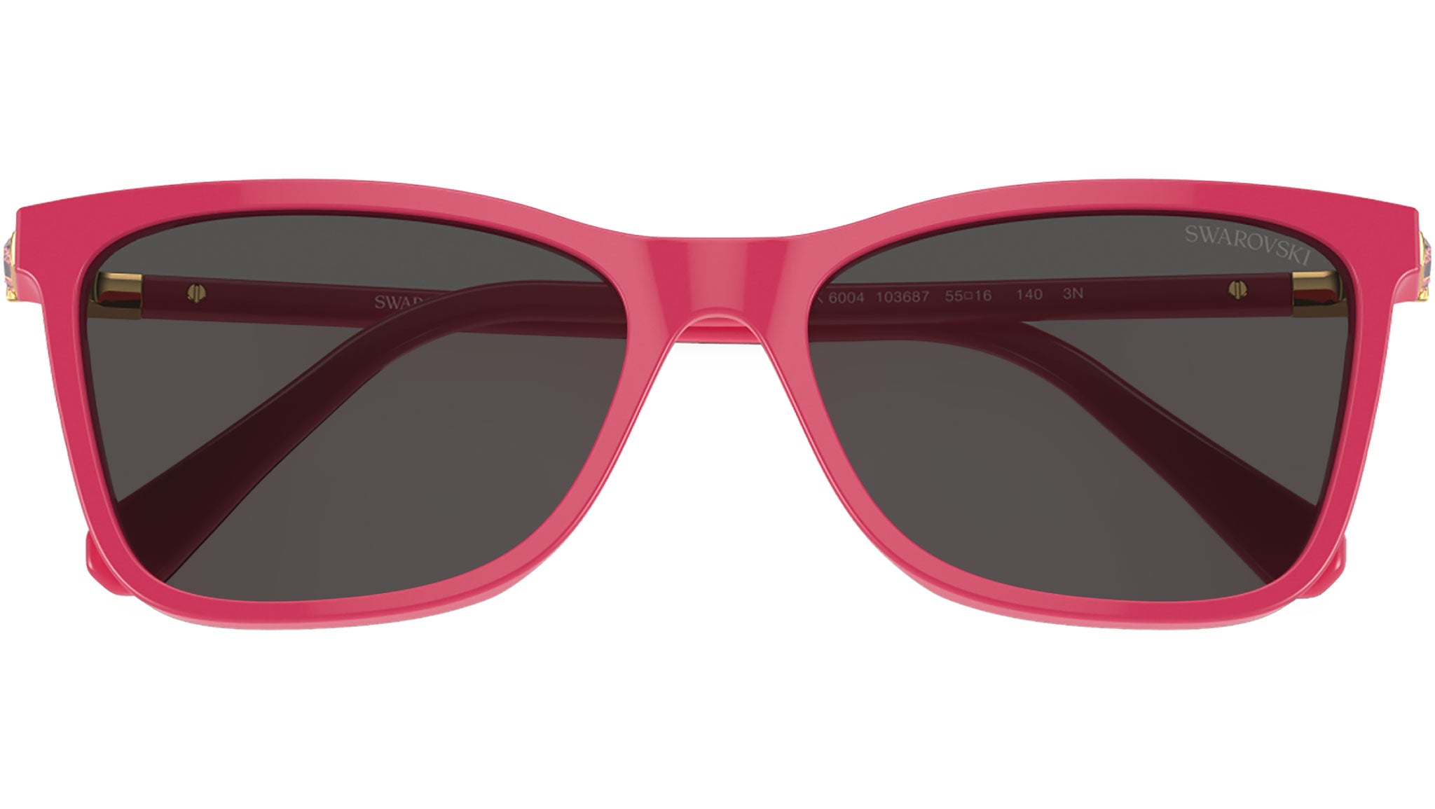 Occhiali da sole Swarovski donna modello 6004 full rim in acetato fucsia con lenti grigio scuro base 4. Vestibilità a ponte alto. Linea: Science of Facets. Codice brand: 0SK6004. Codice colore: 103687. Rivenditore autorizzato online Swarovski Eyewear. Ogni prodotto Swarovski viene consegnato con astuccio originale e accessori ed è coperto da garanzia del produttore di 12 mesi.