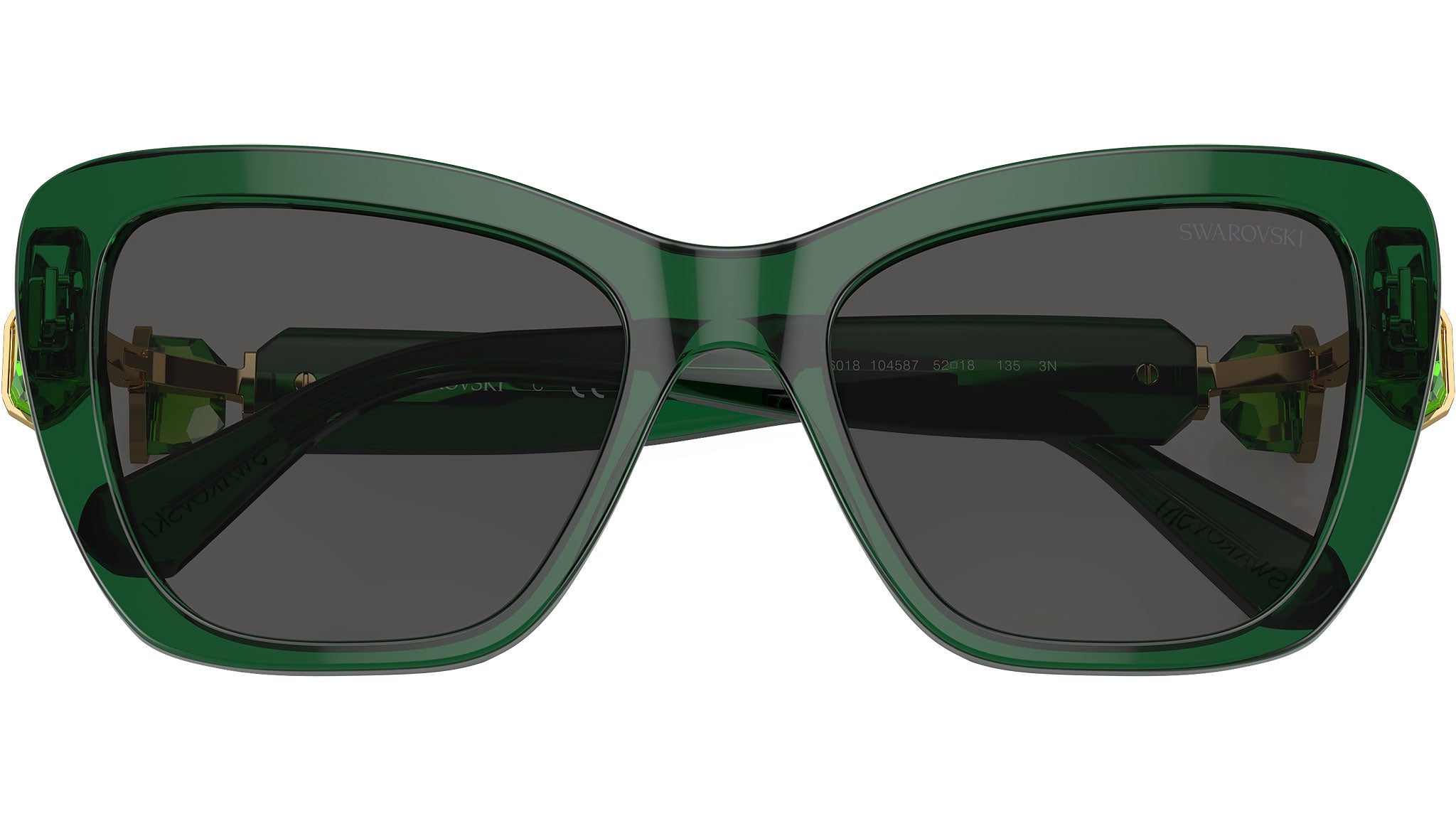 Occhiali da sole Swarovski donna modello 6018 full rim in acetato verde scuro trasparente con lenti grigio scuro base 4. Vestibilità a ponte alto. Linea: Science of Facets. Codice brand: 0SK6018. Codice colore: 104587. Rivenditore autorizzato online Swarovski Eyewear. Ogni prodotto Swarovski viene consegnato con astuccio originale e accessori ed è coperto da garanzia del produttore di 12 mesi.