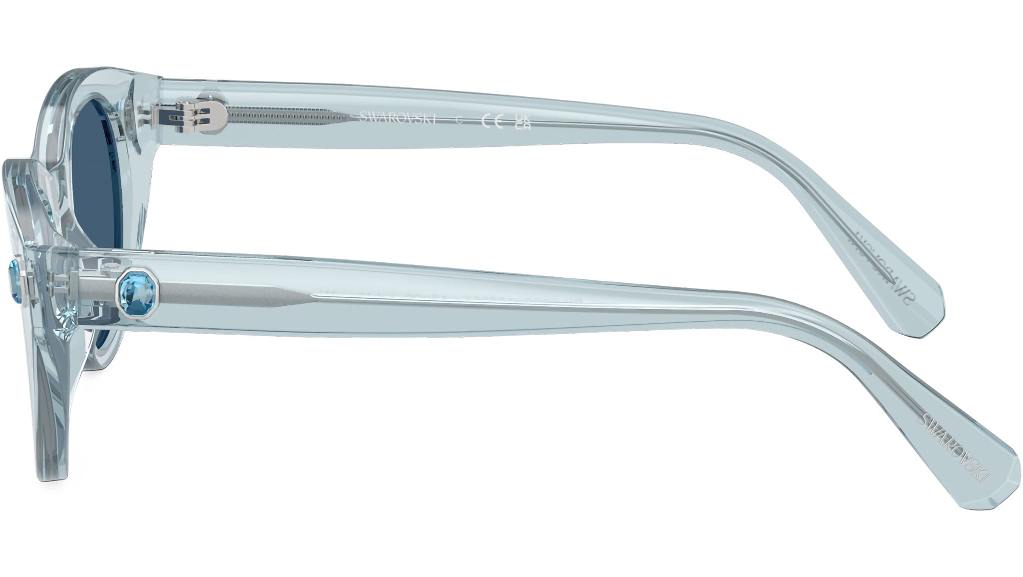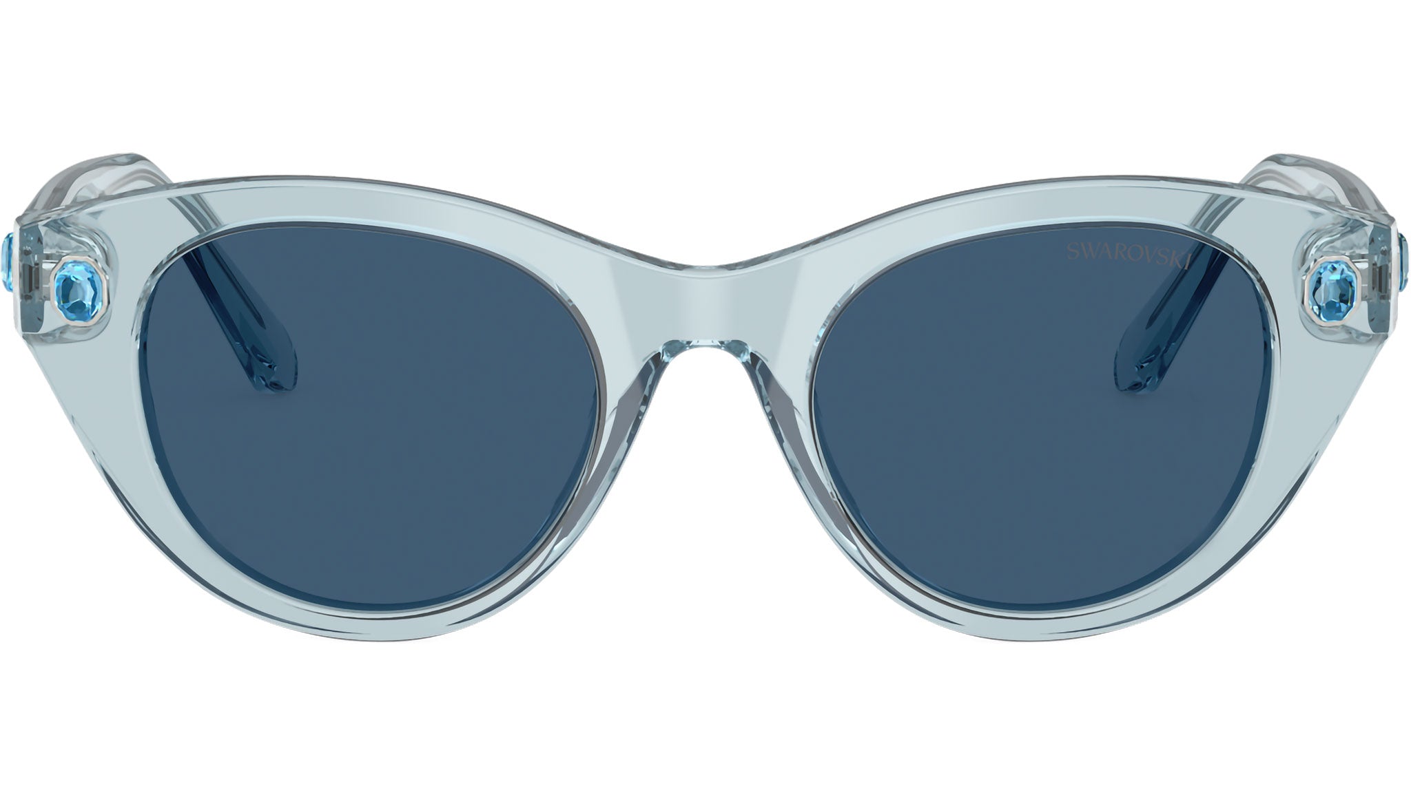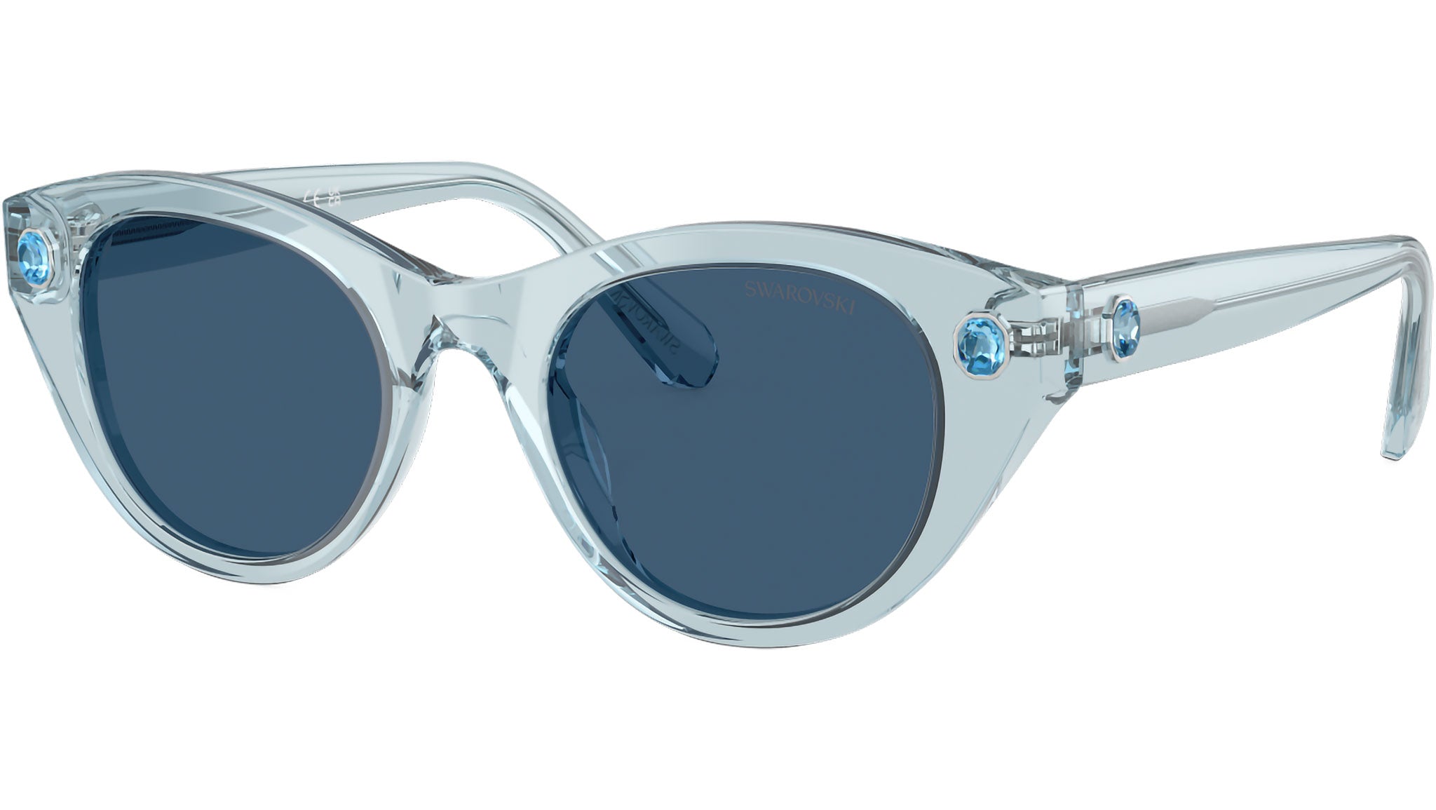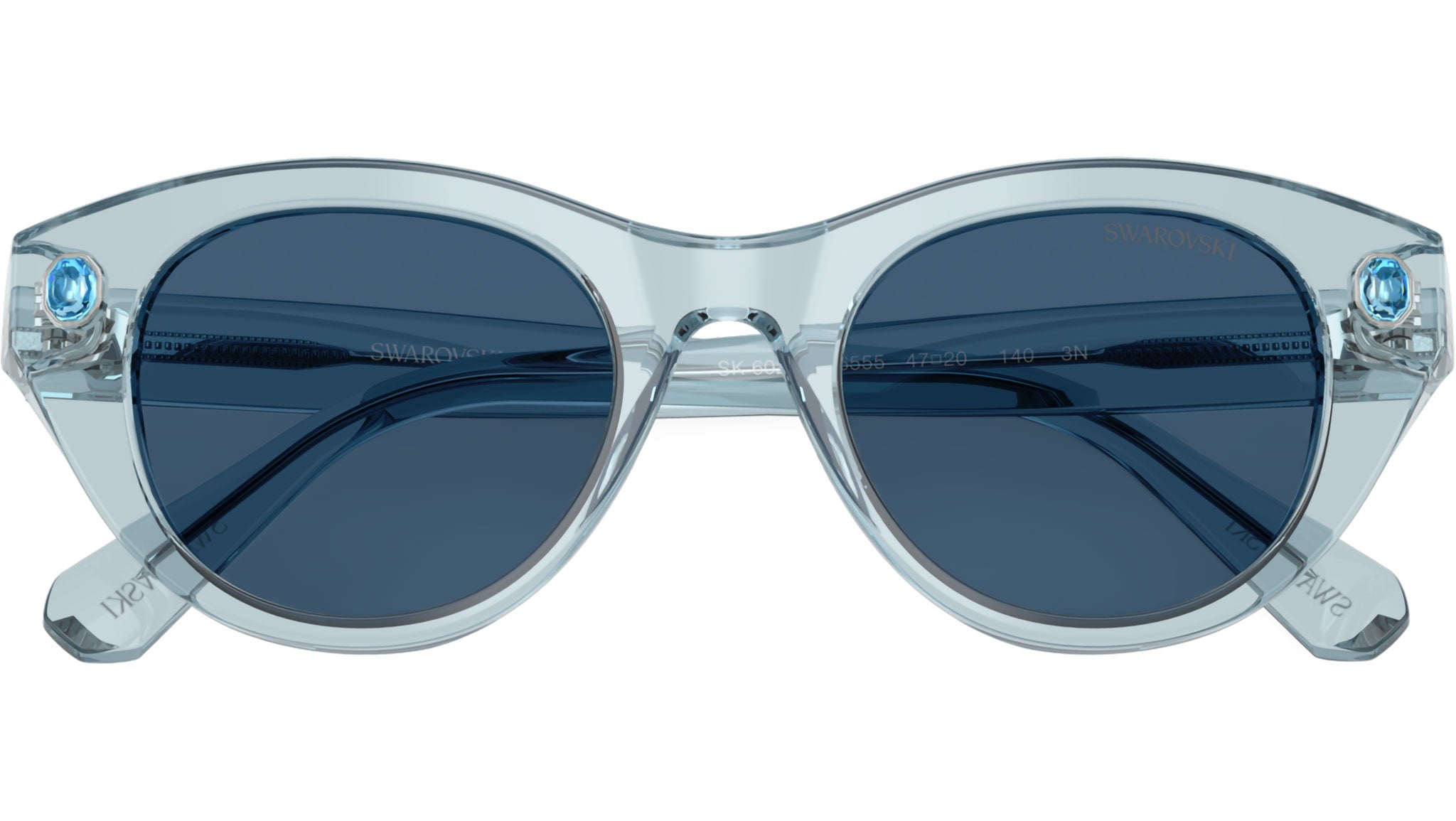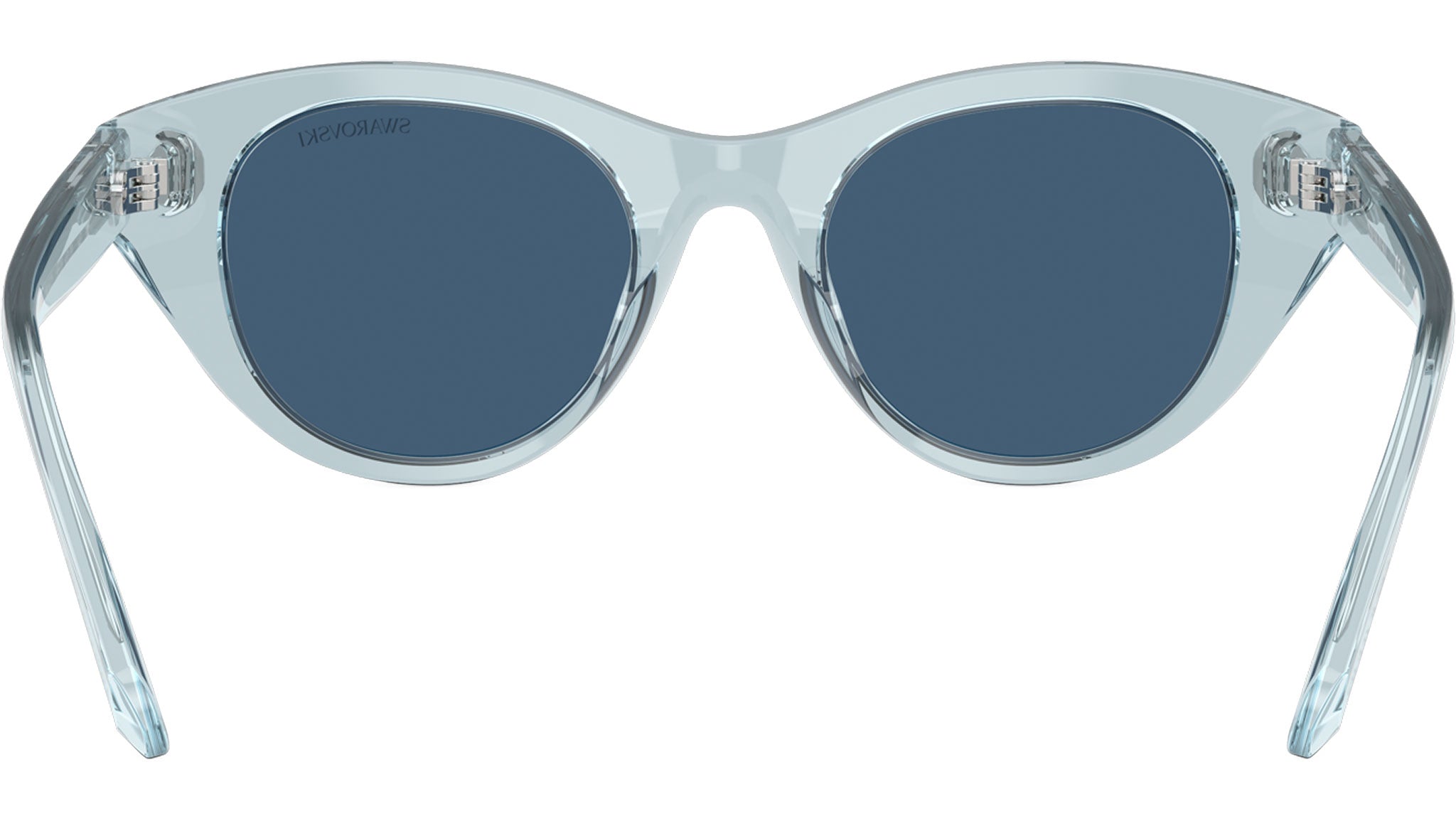 Occhiali da sole Swarovski donna modello 6025 full rim in acetato azzurro trasparente con lenti blu scuro base 4. Vestibilità a ponte alto. Linea: Science of Facets. Codice brand: 0SK6025. Codice colore: 106555. Rivenditore autorizzato online Swarovski Eyewear. Ogni prodotto Swarovski viene consegnato con astuccio originale e accessori ed è coperto da garanzia del produttore di 12 mesi.