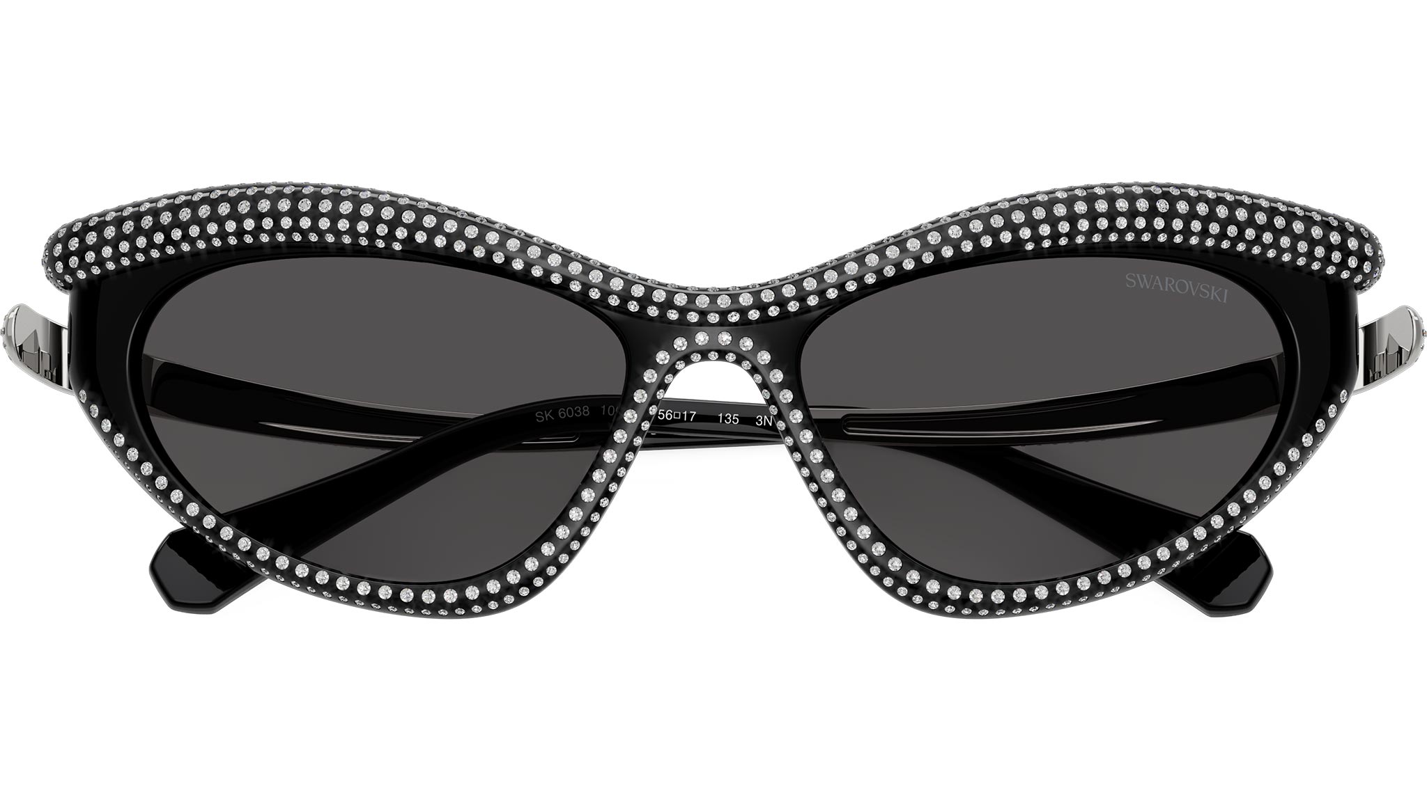 Occhiali da sole Swarovski SK6038 100187 donna, con montatura cat eye in Injected color nero e lenti grigio scuro in poliammide. Vestibilità a ponte alto. Linea: Science of Facets. Codice modello: SK6038. Codice colore: 100187. Rivenditore autorizzato Swarovski Eyewear online. Ogni prodotto Swarovski viene consegnato con astuccio originale e accessori ed è coperto da garanzia del produttore di 12 mesi.