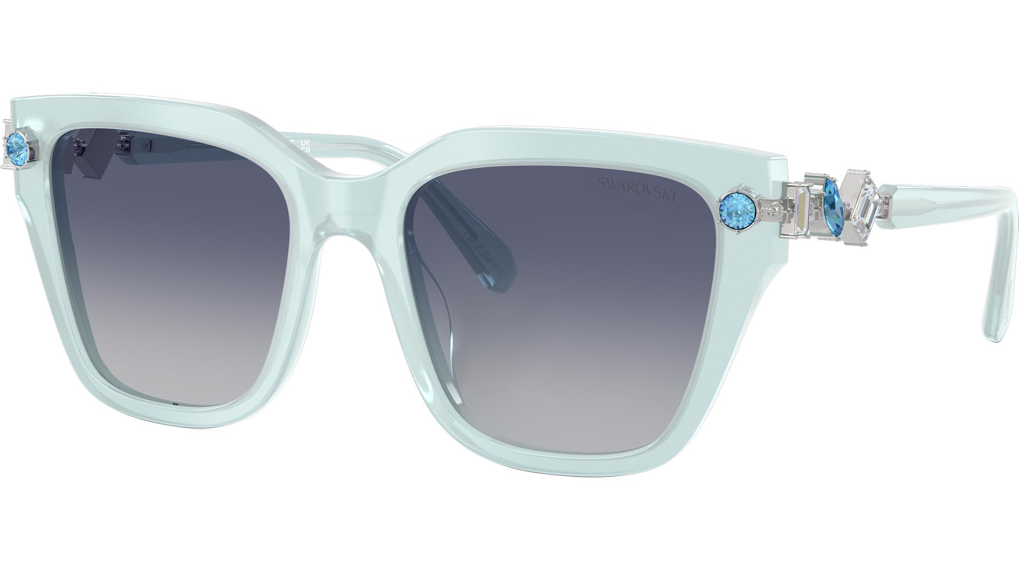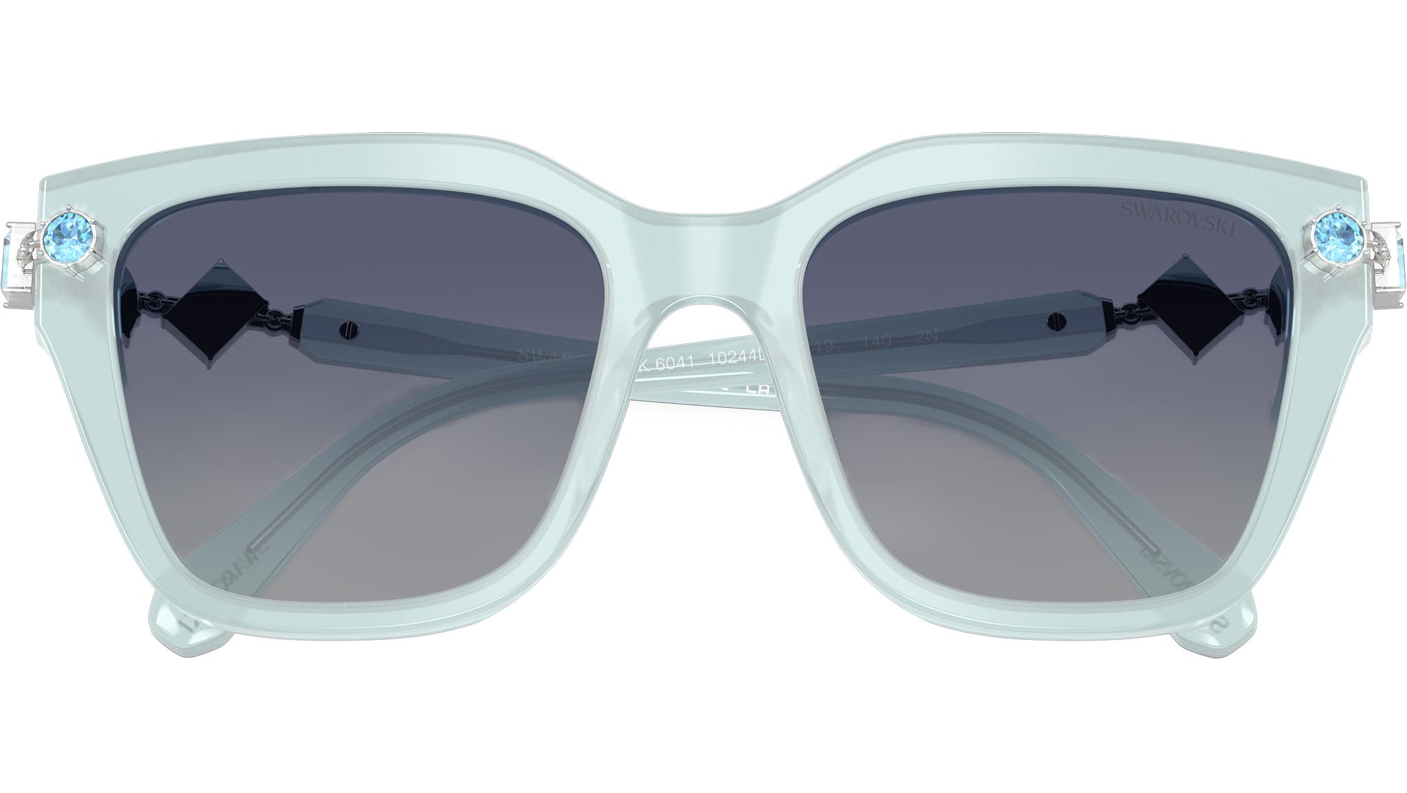 Occhiali da sole Swarovski SK6041 10244L donna, con montatura geometrica in acetato color azzurro trasparente e lenti blu sfumato in poliammide. Vestibilità a ponte alto. Linea: Science of Facets. Codice modello: SK6041. Codice colore: 10244L. Rivenditore autorizzato Swarovski Eyewear online. Ogni prodotto Swarovski viene consegnato con astuccio originale e accessori ed è coperto da garanzia del produttore di 12 mesi.