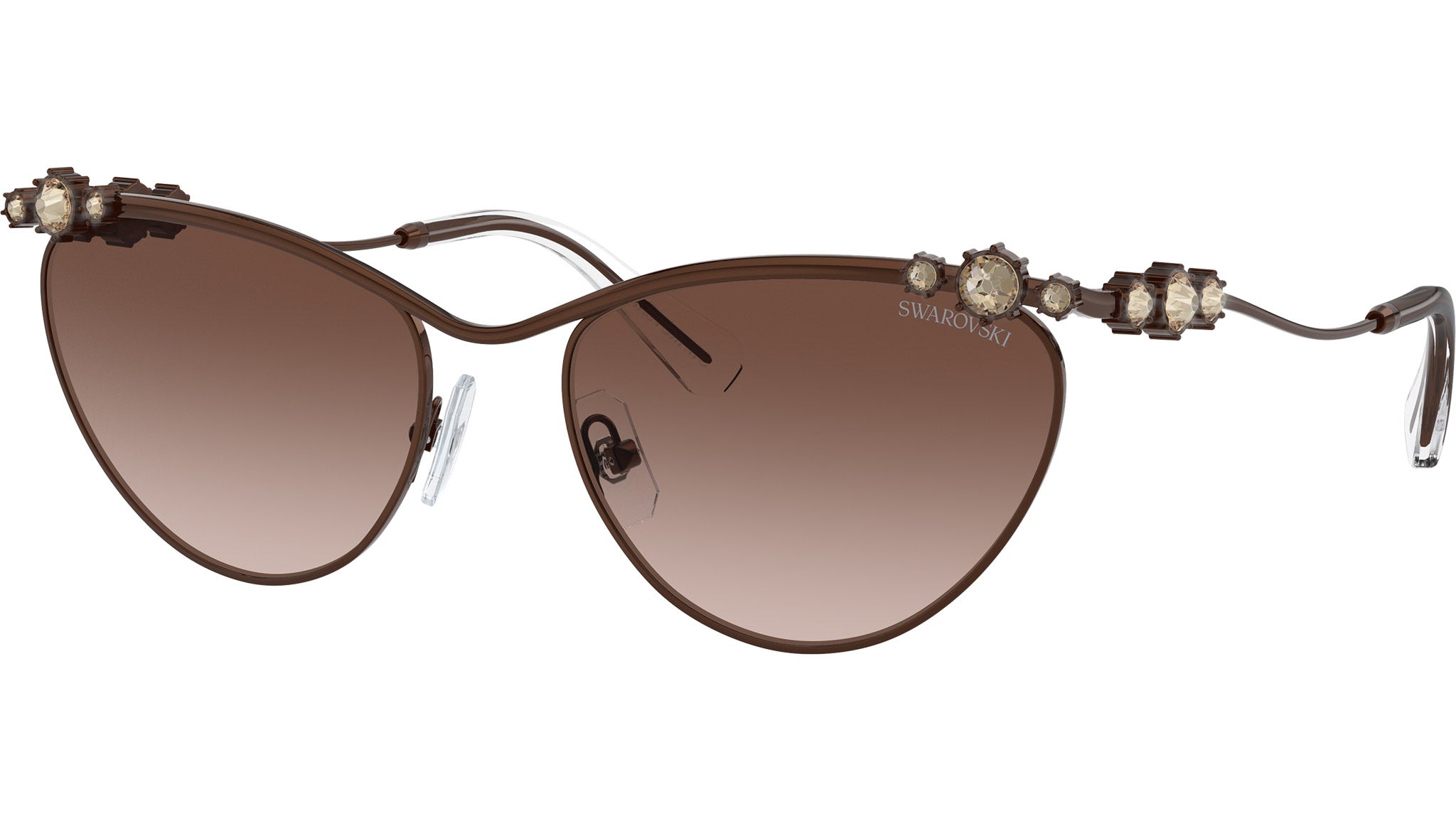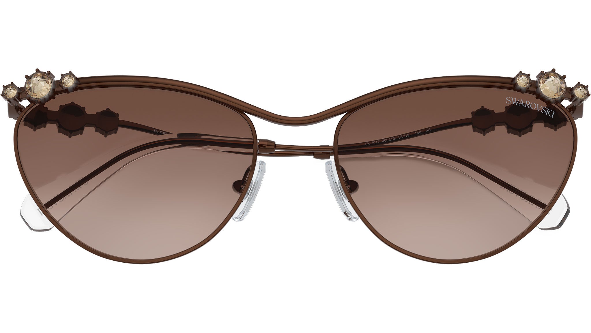 Occhiali da sole Swarovski donna modello 7017 full rim in metallo marrone con lenti gradiente marrone base 4. Naselli regolabili. Linea: Science of Elegance. Codice brand: 0SK7017. Codice colore: 400213. Rivenditore autorizzato online Swarovski Eyewear. Ogni prodotto Swarovski viene consegnato con astuccio originale e accessori ed è coperto da garanzia del produttore di 12 mesi.