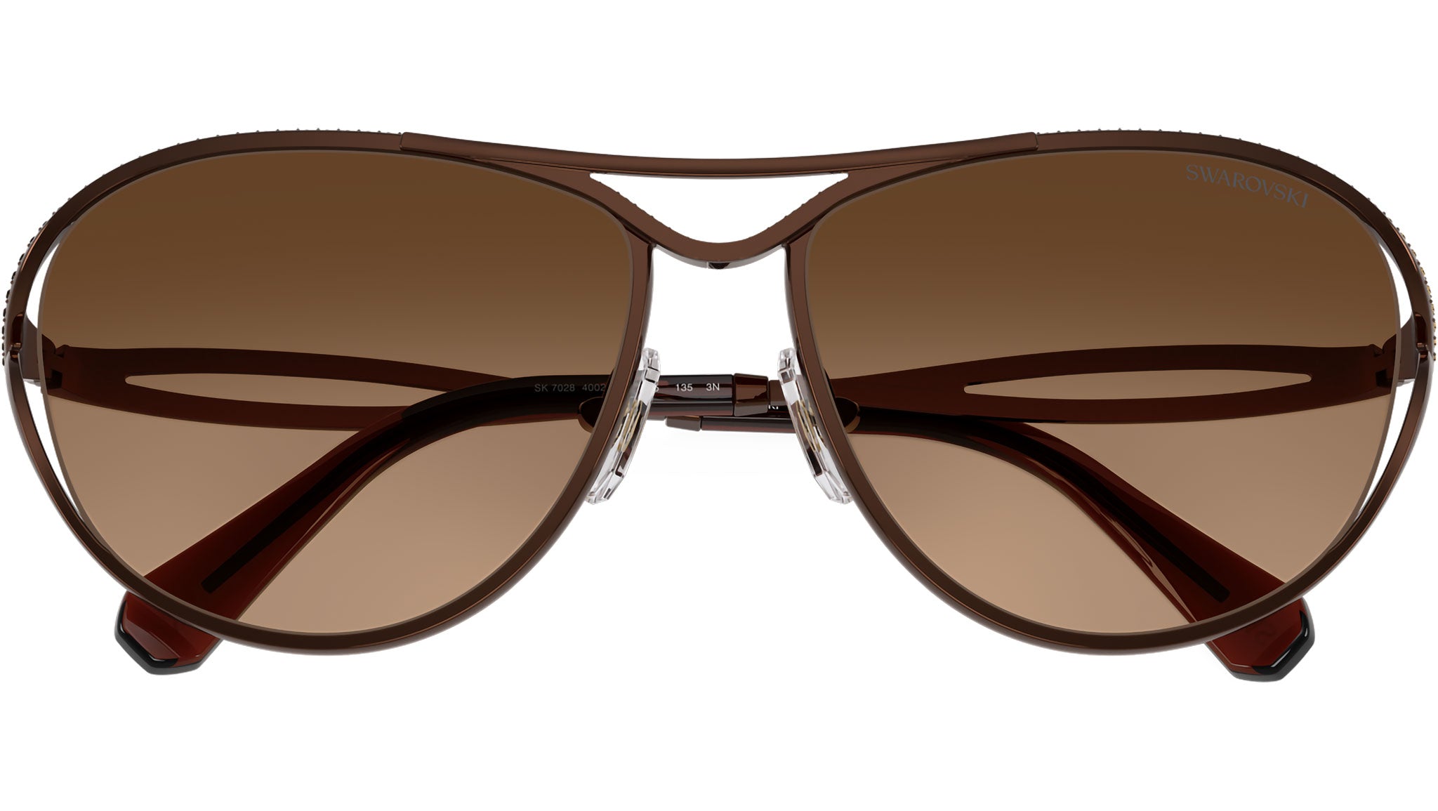 Occhiali da sole Swarovski donna modello 7028 semi rim in metallo marrone con lenti gradiente marrone base 4. Naselli regolabili. Linea: Science of Elegance. Codice brand: 0SK7028. Codice colore: 400274. Rivenditore autorizzato online Swarovski Eyewear. Ogni prodotto Swarovski viene consegnato con astuccio originale e accessori ed è coperto da garanzia del produttore di 12 mesi.
