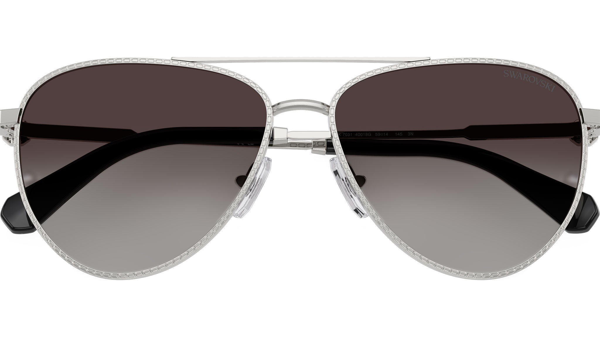 Occhiali da sole Swarovski SK7031 40018G donna, con montatura aviatore in metallo color argento e lenti grigio sfumato in poliammide. Naselli regolabili. Linea: Science of Facets. Codice modello: SK7031. Codice colore: 40018G. Rivenditore autorizzato Swarovski Eyewear online. Ogni prodotto Swarovski viene consegnato con astuccio originale e accessori ed è coperto da garanzia del produttore di 12 mesi.