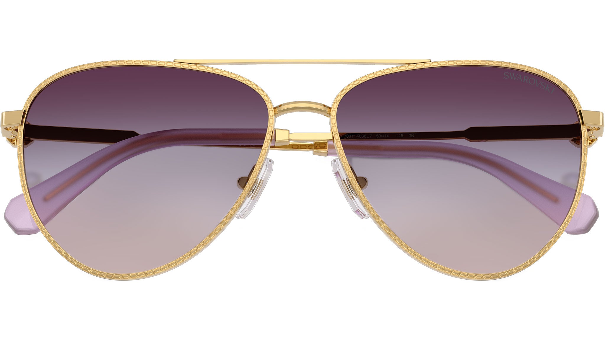 Occhiali da sole Swarovski SK7031 4036U7 donna, con montatura aviatore in metallo color oro e lenti marrone a specchio blu viola in poliammide. Naselli regolabili. Linea: Science of Facets. Codice modello: SK7031. Codice colore: 4036U7. Rivenditore autorizzato Swarovski Eyewear online. Ogni prodotto Swarovski viene consegnato con astuccio originale e accessori ed è coperto da garanzia del produttore di 12 mesi.