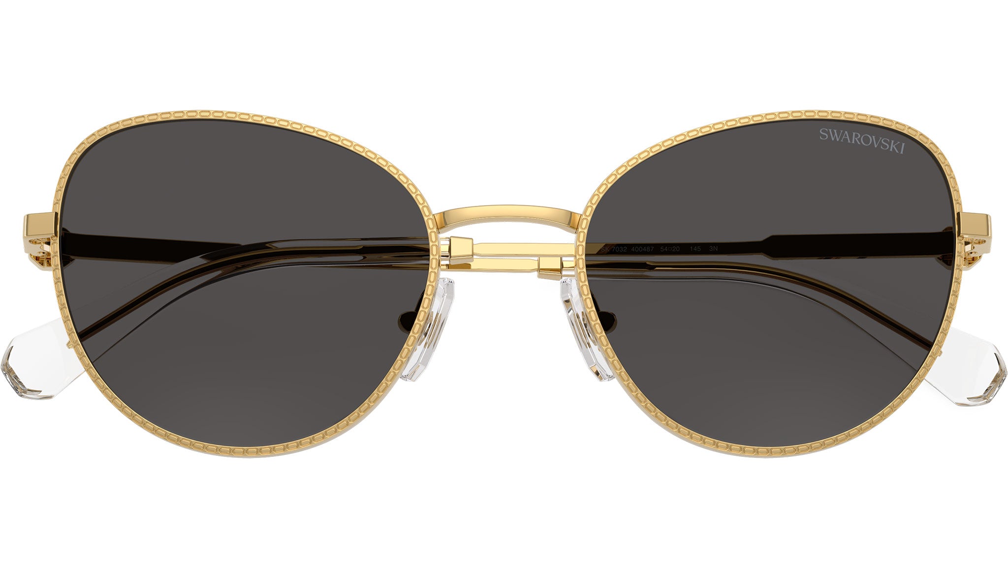 Occhiali da sole Swarovski SK7032 400487 donna, con montatura rotonda in metallo color oro e lenti grigio scuro in poliammide. Naselli regolabili. Linea: Science of Facets. Codice modello: SK7032. Codice colore: 400487. Rivenditore autorizzato Swarovski Eyewear online. Ogni prodotto Swarovski viene consegnato con astuccio originale e accessori ed è coperto da garanzia del produttore di 12 mesi.