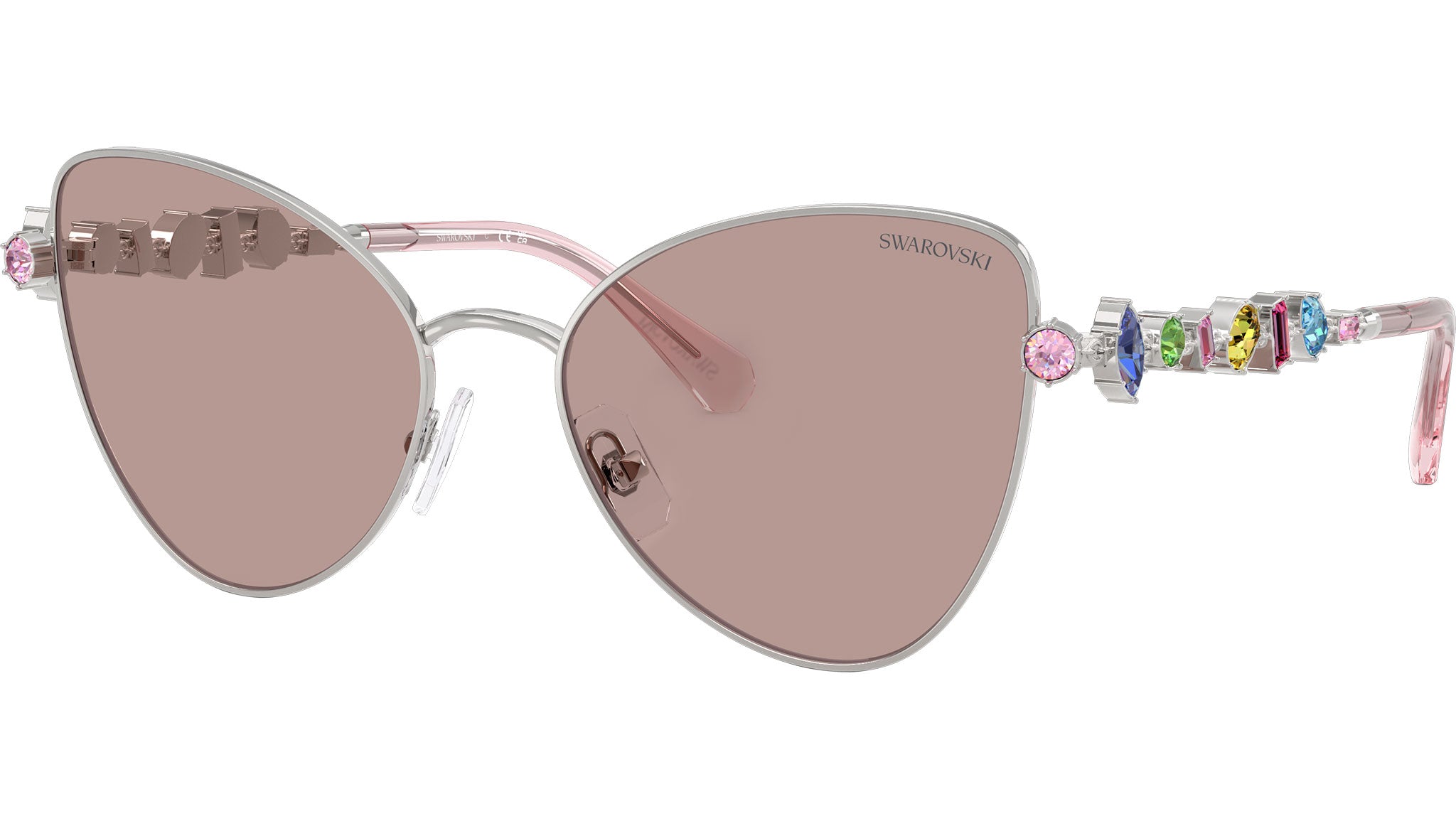 Occhiali da sole Swarovski SK7034 401M7N donna, con montatura butterfly in metallo color argento e lenti marrone chiaro sfumato in poliammide. Naselli regolabili. Linea: Science of Facets. Codice modello: SK7034. Codice colore: 401M7N. Rivenditore autorizzato Swarovski Eyewear online. Ogni prodotto Swarovski viene consegnato con astuccio originale e accessori ed è coperto da garanzia del produttore di 12 mesi.