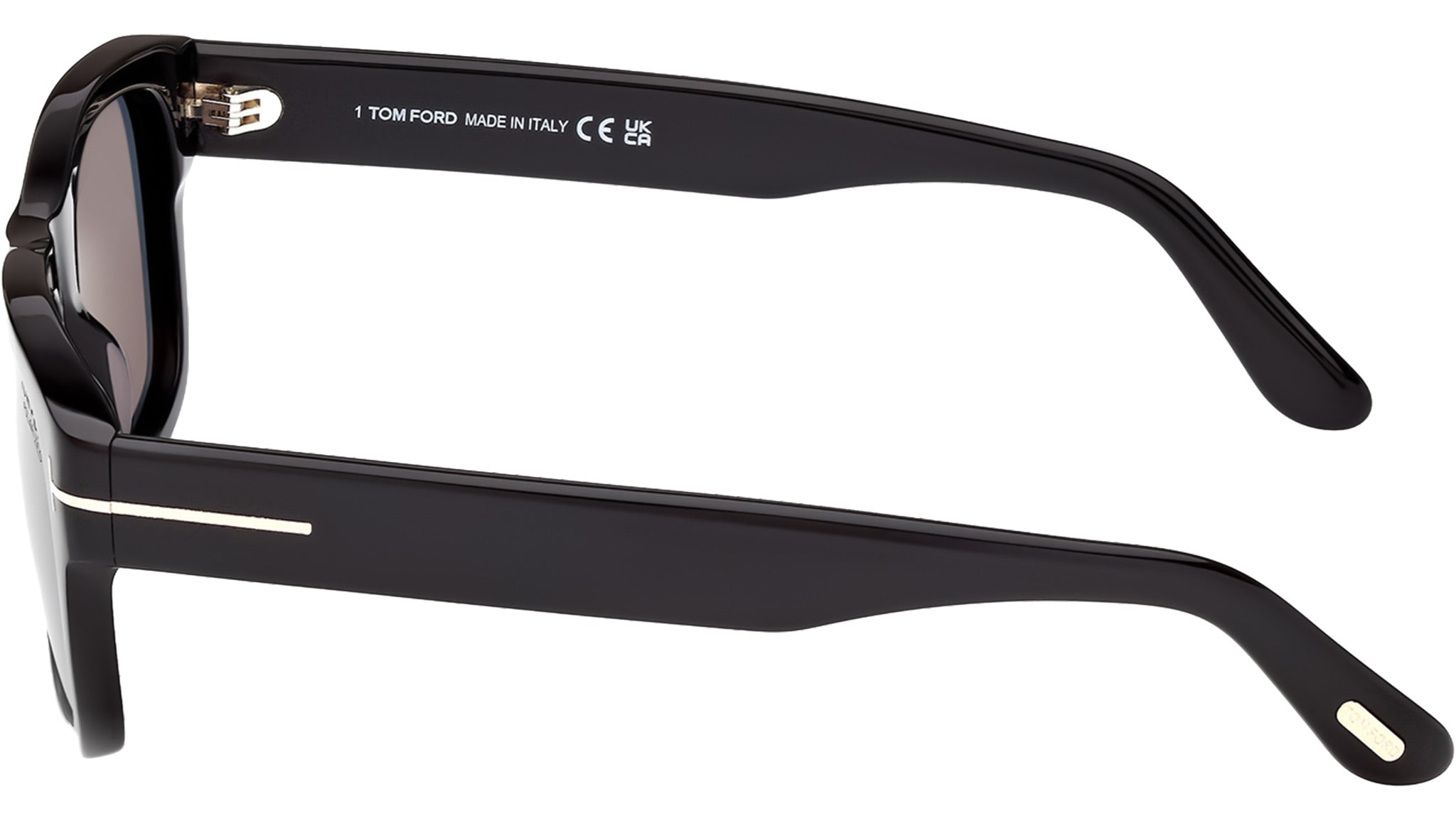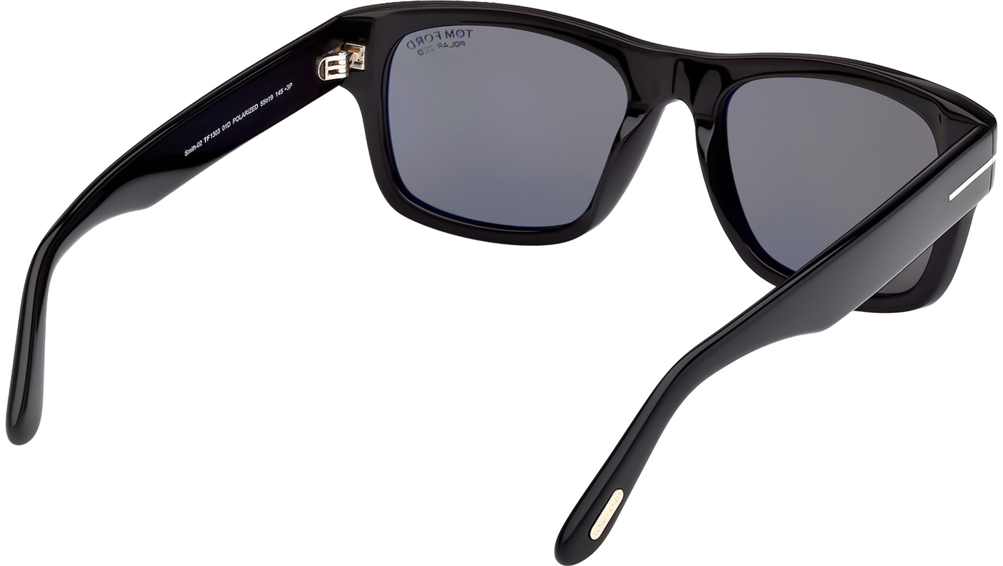 Occhiali da sole Tom Ford uomo modello Smith-02 FT1303 con montatura rettangolare full-rim in acetato nero lucido e lenti color grigio fumo polarizzato. Codice Brand: 1303. Codice colore: 01D. Rivenditore autorizzato Tom Ford online. Gli occhiali vengono consegnati con custodia e accessori originali e sono coperti da garanzia standard di 12 mesi del produttore.