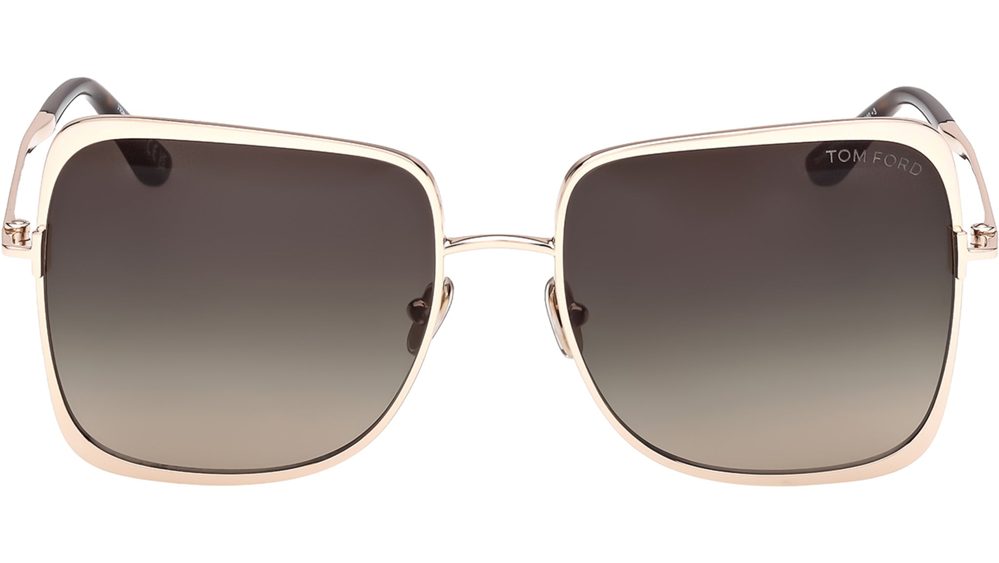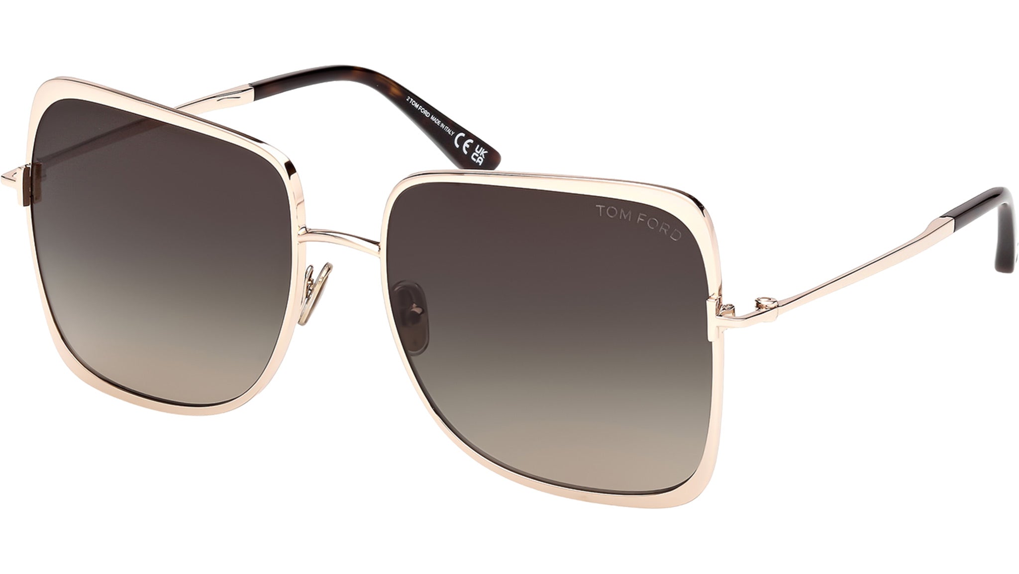 Occhiali da sole Tom Ford donna modello Tara-02 FT1319 con montatura geometrica full-rim in metallo oro rosa e lenti color grigio fumo sfumato. Codice Brand: 1319. Codice colore: 28B. Rivenditore autorizzato Tom Ford online. Gli occhiali vengono consegnati con custodia e accessori originali e sono coperti da garanzia standard di 12 mesi del produttore.