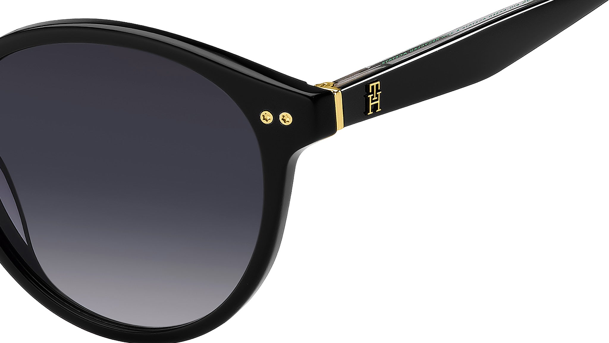 Occhiali da sole Tommy Hilfiger TH 2159/S 807 9O donna con montatura pantos in eco acetato nero e lenti grigio scuro sfumato. Nato nei college americani negli anni '50, lo stile preppy è la cifra stilistica di questi occhiali da sole per donna Tommy Hilfiger. La montatura è in acetato bio-based, proposta nelle nuance classiche oppure di stagione, anche nelle varianti in doppia colorazione. Impreziosiscono la costruzione i rivetti rotondi sul frontale, il monogramma TH sulle aste e la bandiera del brand sul terminale sinistro. Può montare lenti da sole graduate. Linea: Modern Preppy. Codice modello: 207434. Codice colore: 807 9O. Rivenditore autorizzato Tommy Hilfiger online. Gli occhiali vengono consegnati con custodia e accessori originali e sono coperti dalla garanzia ufficiale di 12 mesi del produttore.