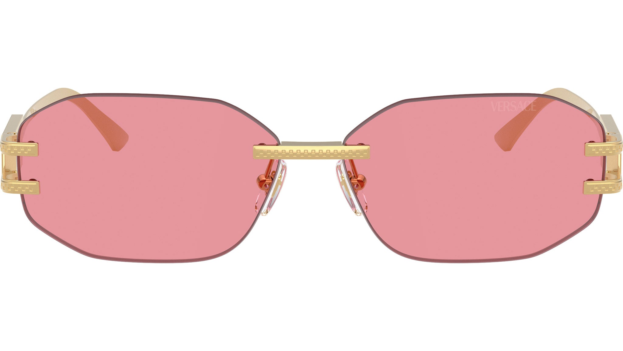 Occhiali da sole Versace donna modello 2274 rimless in metallo color oro con lenti rosa base 2. Naselli regolabili. Linea: Fashion Id. Codice brand: 0VE2274. Codice colore: 100284. Rivenditore autorizzato online Versace Eyewear. Ogni prodotto Versace viene consegnato con astuccio originale e accessori ed è coperto da garanzia del produttore di 12 mesi.