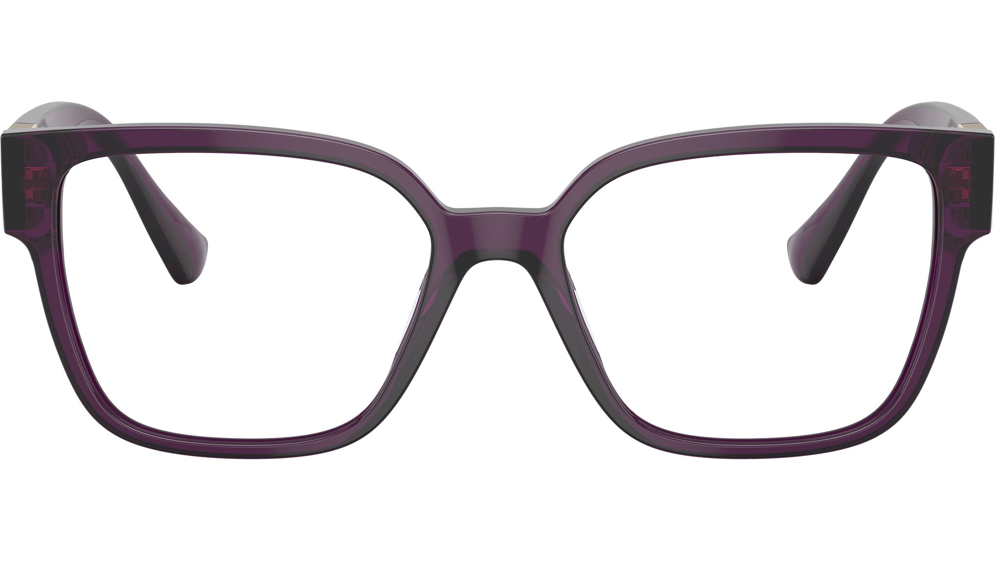 Occhiali da vista Versace modello VE3329B variante colore 5384 prugna trasparente. Dedicata a chi desidera uno stile contemporaneo, sexy, sofisticato e dalla forte personalità, Versace è una delle case di alta moda e lusso più iconiche e famose al mondo. La collezione eyewear combina innovazione tecnica e stile essenziale del brand, ed è fortemente caratterizzata dagli elementi decorativi che da sempre contraddistinguono la Maison.